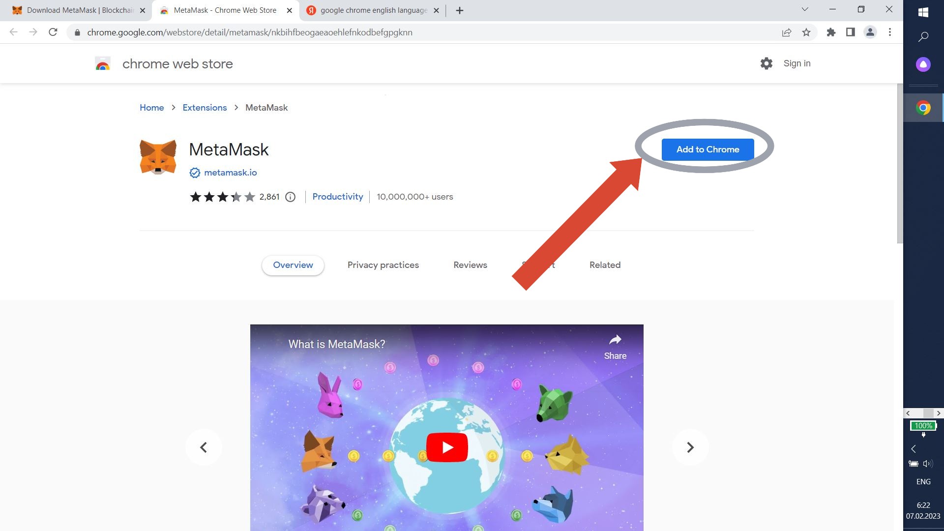 Let's install Metamask. Click "Add to Chrome".