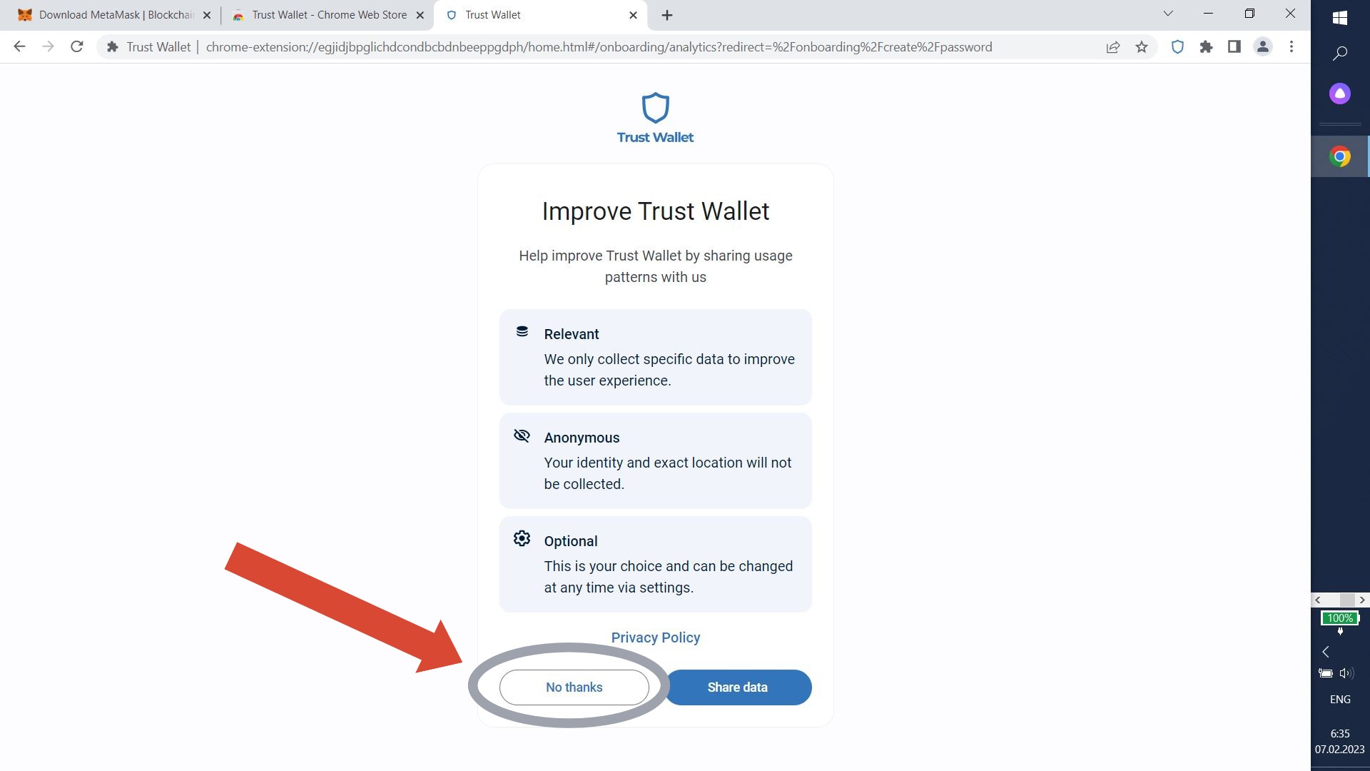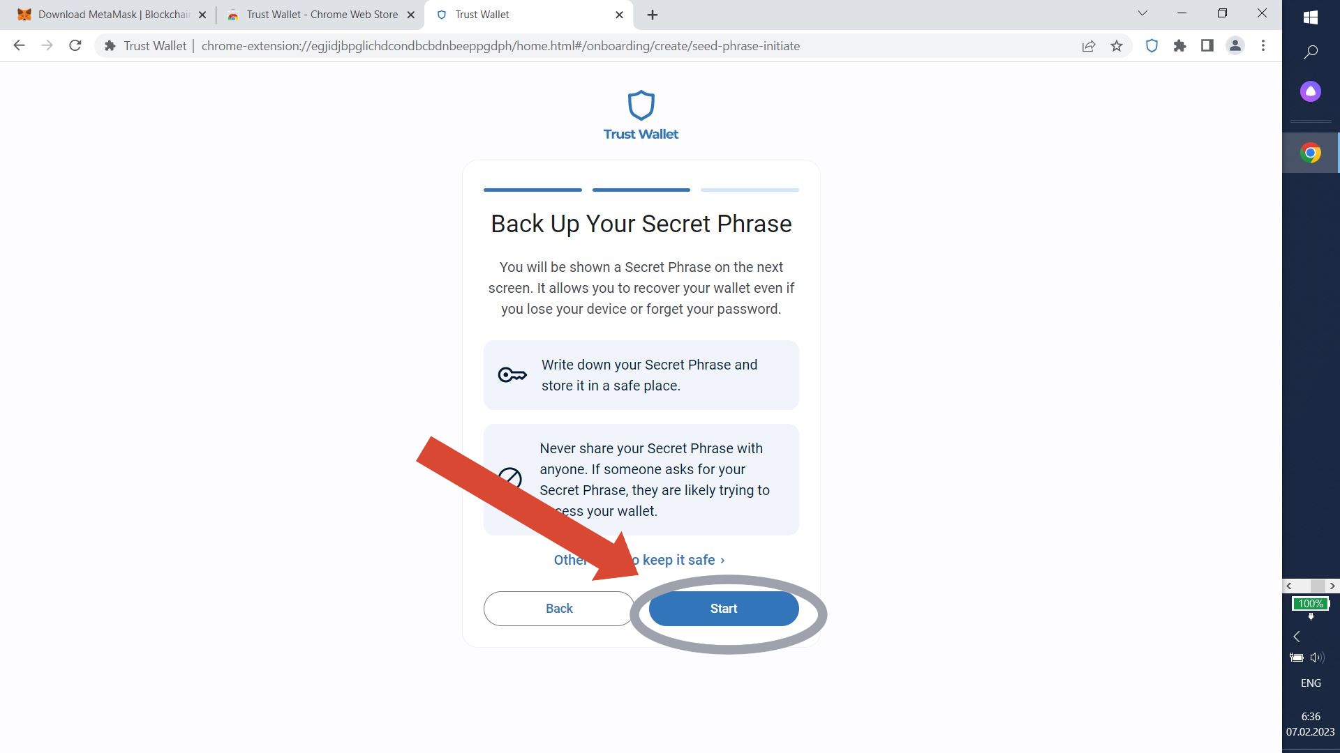 Let's create a secret recovery phrase to protect your wallet. Click "Secure my wallet".